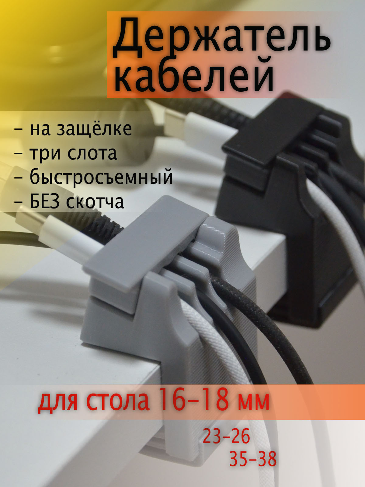 Держатель кабелей, угловой, для стола 16 - 18мм (23 - 26) (35 - 38)